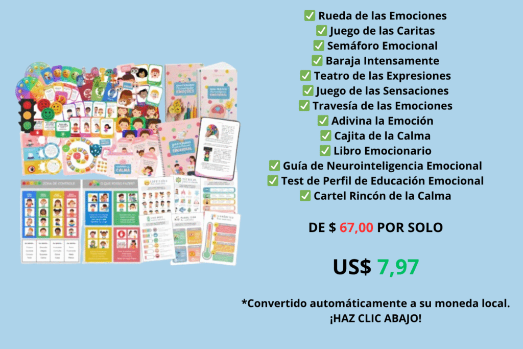 Si eres madre, cuidadora, psicóloga, terapeuta, pedagoga, profesora, educadora parental o trabajas con niños/educación infantil, ¡esta es tu oportunidad de enseñar inteligencia emocional! Accede a un material enriquecedor y validado para una mediación interactiva y afectiva.